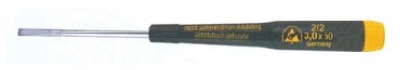 用于紧固和松开M3以下精密十字螺钉。 同时确保工具上不带任何静电荷,防止集成电路板精密电子元件 由于携带微小静电造成误动作和损坏。 适用于所有对静电荷放电敏感的精密电子元件工作环境。 手柄表面具有106-109欧姆电阻,确保静电接地缓慢释放, 快释易损坏精密电阻元件。