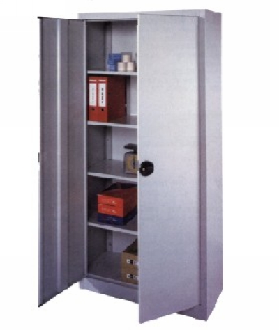 用于办公室,仓库和车间,薄钢制造, 叶门带有3轮锁螺栓和2把钥匙,中间是加固门, 有4层镀锌的架子,每层约50公斤负载能力。 整体为RAL 7035 浅灰色外部。 尺寸 高×宽×深:1950×940×400 mm。