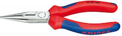 适于电子元件的夹持和剪切;尖形半圆嘴钳口;钳口表面带齿;剪切刀口适于剪切中硬线和硬线;刀口硬度约为洛氏硬度HRC61;长度140,头部抛光,双重双色材料手柄