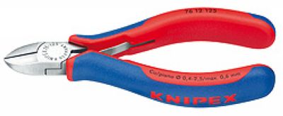 采用精密剪切刀口,适合剪切软线硬线,还适于剪切较细钢琴丝;重叠绞接;刀口硬度约为洛氏硬度63HRC;型 1:偏刃,采用低摩擦双弹簧,易于平衡、开合;长度125,头部抛光,双色双重材料手柄