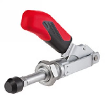 without angle base. For push- and pull-clamping. (Equal operation of rod and lever). Long rod-guide with attaching thread and nut. Galvanized and passivated. Rivets made of stainless steel, which, for sizes 2 and 3, run in hardened bushings. Lever-parts a