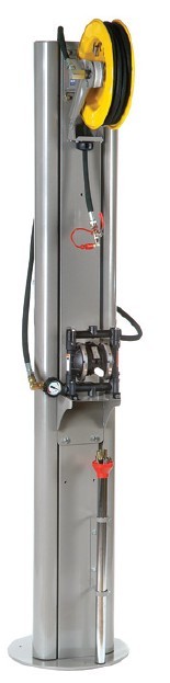 配有: 支撑柱 气动双动膜片式泵 墙装托架 10m G1/2”软管卷盘 9件导管组套 ?12mm导管 墙装导管架 1.5m G1/2”连接管 4m吸油管