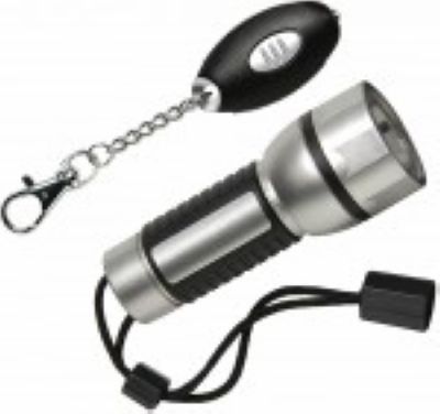 Compact light with 3 superbright LEDs. Twist-switch in the head of the torch. Rubberised handle. Also comes with a very small, superbright LED light on a key-chain. 3 x AAA and 3 x AG 3 lithium batteries included.